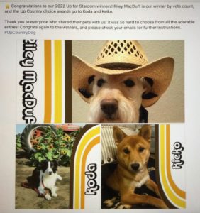 Not only did I win a gift certificate for Up Country’s super dog products, but I won a professional photo shoot with some of their products and I will be featured in their 2023 catalog! They have some really top quality collars, leashes, and dog coats, so I should be stylin’ and I even get to keep the products they send me to pose with for the pictures.