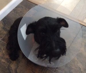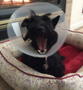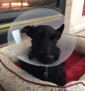 That darn cone is something that none of us Scotties are fond of, but it sure seems to help out with Sadie’s ear infection discomfort by restricting her activity and she gets over her head shaking and foot scratching obsession much faster than if she wouldn’t wear it. I hate to admit it, but I guess that darn cone is useful after all!