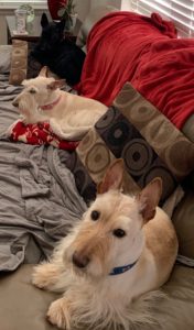 There has been a different doggie family dynamic since we lost our sister, Sunny. Now that there are three of us Scotties, instead of four and we don’t have our leader anymore, my sisters and I have become a little closer. Sadie is still her same goofy friendly self and I am my usual laid back self, but Molly has become less shy and she has even shared the couch with Sadie a few times. To see the two of them hanging out together is something new, because Sadie and I have always shared our dog bed and we normally hang together on the couch, but Molly and Sadie together? No way!