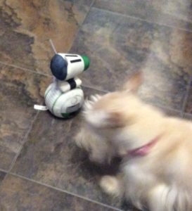 It’s such a rare occasion when I grab a hard chew toy that Wen will take my picture with it as documentation. It only happens about once a year, because I prefer plush toys, which I can shred in a matter of minutes, but since they don’t last long, that’s why Wen buys the hard chew toys for us. Confidentially, I’d rather have an edible chew stick than a plush toy or a hard rubber toy any day. Nothing’s better than something to lick and chew on that has a little flavor!
