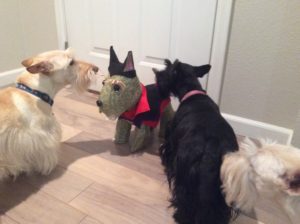 Back in 2006, after reserving the one available female wheaten Scottie puppy from an out of state litter, Wen and her friend set out on an an adventure to meet the breeder and check out the puppy. When they arrived at their meeting place, the breeder had set up an exercise pen and there were TWO wheaten puppies! Evidently, the person who had spoken for the second puppy had changed his mind at the last minute and chosen a black pup, so Wen had a dilemma: how to choose between two adorable puppies?