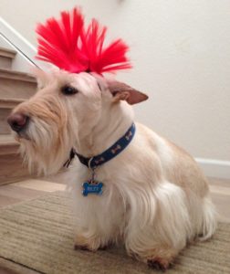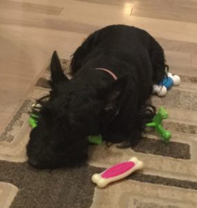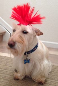 Even though we Scotties receive a thorough brushing out of our haircoats every morning, whether we need it or not, there’s one of us who always needs it. No matter how well Wen brushes her hair, by the next day, Sadie has crazy hair again! Go figure!