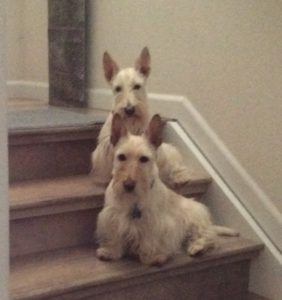 Even though we are best buds, Molly and I pretty much do our own thing. After all, we ARE independent Scotties! Every once in awhile though, it is evident that we are besties. This morning, we sat on the stairs together for the longest time, which was unusual, but it proves my point: we are best buds!