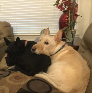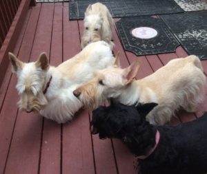 Not only was Wen concerned about Sunny’s health after finding out that she has a large mass on her spleen, but we Scotties realized that sonething was not right. When Sunny came home from the animal clinic, we gathered around her on our deck. We may not totally understand what is going on with Sunny, but the troops are rallying around her and we are there for her. Sunny has always been our big sister and she is our fearless leader.