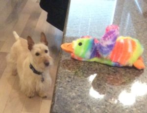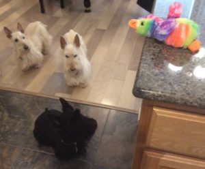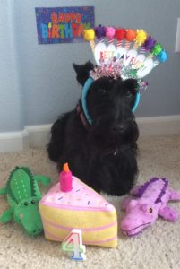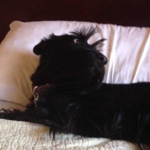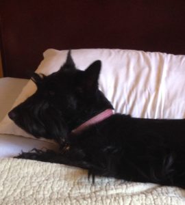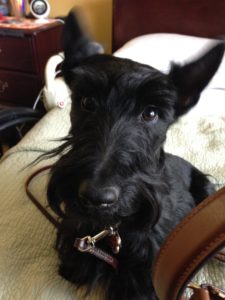 Why does Wen love grooming day so much? She works extra hard to get us in good condition to go get groomed and then we have a 45 minute drive to Gigi’s Groom and Board where she drops us off for several hours. Since it’s kind of far from home, Wen has to kill the time until she picks us up, so she usually goes hiking and geocaching until she gets a text to come and pick us up. Then, we have another 45 minute drive home, so basically, every grooming day is a long one. Yet, Wen looks forward to each and every grooming day. Why? Because when she picks us up, we are squeaky clean, we look gorgeous, and we smell like doggie perfume. For a little while, we are good-looking dogs and Wen knows to enjoy it as long as it lasts! After all, we Scotties like to dig in the dirt, eat nasty stuff, play in the mud, and roll in stink out in the yard and our perfectly groomed haircoats and sweet-smelling doggie perfume only last so long!