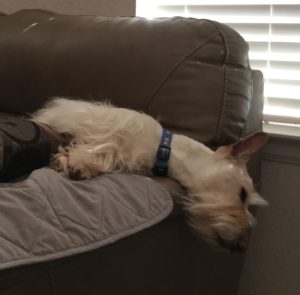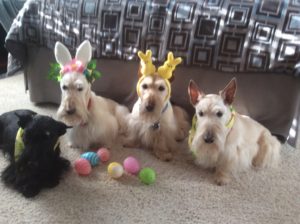 Actually, since the weather has turned warmer, all of us Scotties have pretty much ignored the dog bed, so Wen was going to put it away until next fall. That was until Sunny walked over to it, curled up in it, and took a nice long snooze. Wen was so surprised to see Sunny in the bed that she took a picture of her. If thirteen year old Sunny is going to use the bed, it’s a sure bet that at least for now, the dog bed stays put!