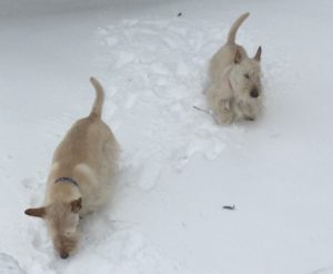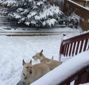 Yep, we got dumped on by the bomb cyclone, but by today, the sun was out and the melting began. While Wen and our neighbors were busy clearing driveways and sidewalks, we Scotties were cruising the backyard and chomping on pieces of ice. In other words, the aftermath of the bomb cyclone was not so bad and we’re looking forward to the big meltdown and much warmer days.