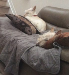 Here it is, Sunday morning. It snowed overnight and it is about zero degrees outside. What do we Scotties do on a freezing cold morning? The two best choices are to lie by the fireplace or stake out a spot on the couch and be a couch potato. Either choice is better than cruising around outside in the frigid temperatures and it seems as though today’s most popular choice is being Scottie couch potatoes. Yep, we are vegging out where it’s nice and toasty warm. Mama didn’t raise no fools!