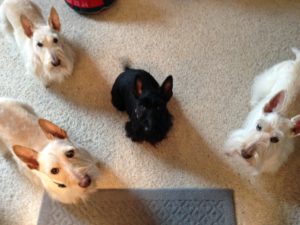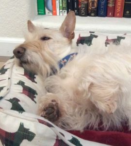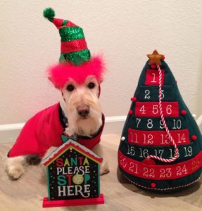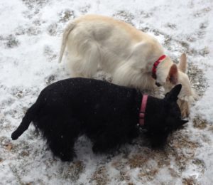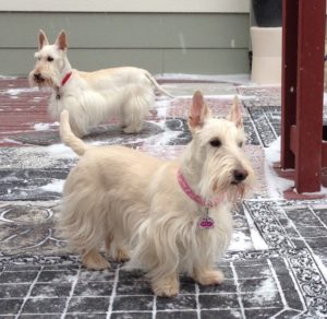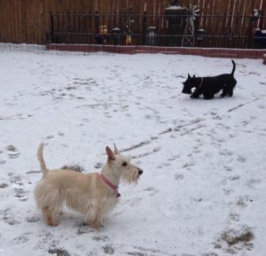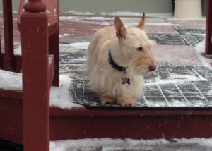 Here it is, New Year’s Eve and b-r-r-r-r, it’s really cold and snowing. We Scotties did our usual romp out in the yard while Wen cleared off the deck. I could say that we were a big help, but that would not exactly be the truth. Instead, we ran around and tried to dig holes down through the snow and chased the squirrel that was running across the top of our fence.