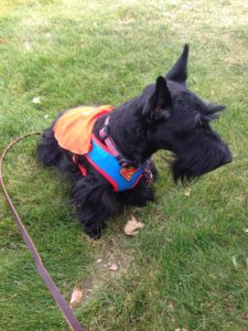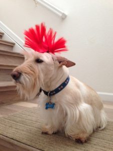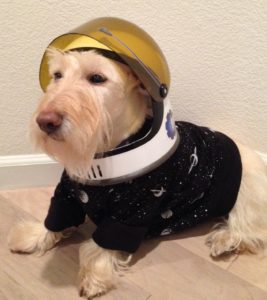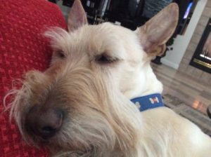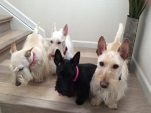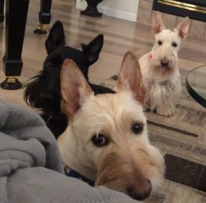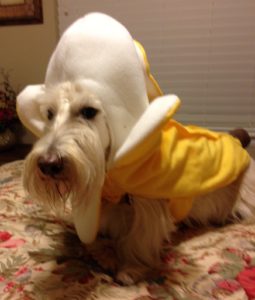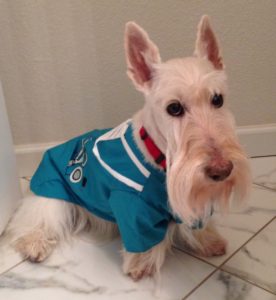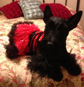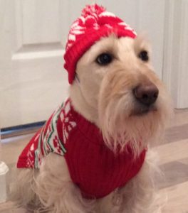 In reality, we Scotties don’t walk around wearing doggie clothes in the winter, unless it is freezing cold and a blizzard outside. Then, Wen might think about putting coats on us for an extended outside jaunt. We do however pose for pictures every year, wearing an assortment of doggie couture, especially around the holidays, just for fun.