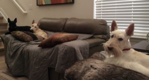 What comes with a few days of cold weather? Doggie winter wear! Yes, we Scotties are forced to endure Wen chasing us around the house with sweaters, hats, and coats to keep us warm when we go outside. Of course, the trick is for her to actually get the sweaters, hats, and coats on us, because our struggles are real!