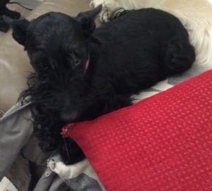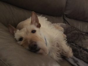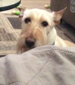 Occasionally though, my breeder, Jim Cantrell of Cantrell’s Scots of Ohio, describes a puppy as a “snuggler” in a puppy personality profile and Wen has decided that the term “snuggler” fits me as well. When I see that she is sitting on the couch, I like to jump up by her and scooch up right next to her, which according to Wen, qualifies me as a “snuggler.”