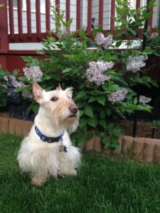 Our backyard is finally nice and green and it has a variety of bushes and flowers that Wen has planted over the years. We Scotties constantly like to go sniffing around the bushes and they are even more interesting to nose around now that they have all of their leaves. Two lilac bushes in particular are Wen’s favorites, but they have struggled each spring due to severe rainstorms and hailstorms and they have barely produced any of the fragrant blooms that she likes. This year though, has been the exception, because all of a sudden, we have all kinds of lilac blooms and I guess that you could say that we finally have the sweet smell of success!