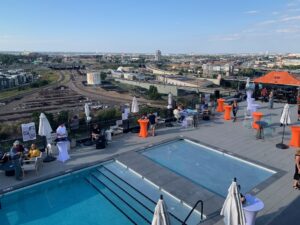 Since I earned the most votes for Week 4 of the Pet Pantry’s Colorado’s Next Top Pet Model 2024 calendar contest, one of my prizes was two tickets to the fundraiser, so Wen took a friend to the event and they really enjoyed the party and seeing the rooftop deck with its multi levels, swimming pools, and great views. The party was the icing on the cake for those of us who participated in the calendar contest and raised money for such a good cause. Hopefully, the fundraiser ticket sales and auction donations will help lots of Colorado families in need to be able to feed their pets!
