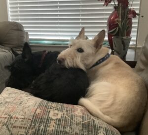 Well, it’s been a strange and totally unexpected 48 hours. Two nights ago, we Scotties were lounging on the couch after our dinner and we ended up snoozing while Wen watched TV and answered emails on her iPad. Later on, when it was time for us to go outside before going to bed, I felt weird and I didn’t move, so Wen picked me up and took me outside with my sisters. They did their business while I stood like a statue.