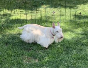 The day of the Halloween party, there were lots of Scotties in festive costumes and Wen had us dressed, sitting in the tank, and ready to go for the parade. There was only one problem: I refused to stay seated in the tank and I jumped out over and over, so Wen finally put me in my crate while Captain Kirby and Sergeant Sunny rode in the tank like pros for the parade. Yes, I missed the entire parade and all I can say is at the time, I had no excuse for my behavior. Pups will be pups!