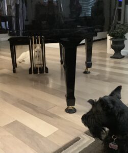 We Scotties are always curious what’s going on in our kitchen.  Any food prep  (smells, noises, whatever) has us showing up to check out the action in the kitchen, because you never know when some tasty morsel could fall on the floor by mistake and we could score a snack.
