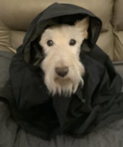 We Scotties slept in a little longer this morning, due to the lack of early morning sunshine that normally pours in our bedroom windows.  Yep, it’s a gloomy rainy day today, thanks to a cold front moving through and we Scotties were greeted with drizzle when we went out in our backyard.