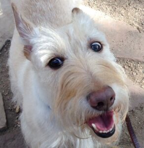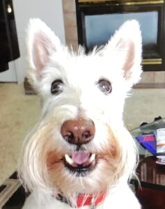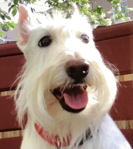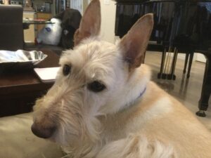 There are some photos that inspire great memories and while scrolling through pictures on her iPad from years ago, Wen came across this one of Sadie as a puppy. She was only about four months old when she showed up to join our Scottie crew and she was a little unsure of being around three adult wheatens, especially one day when Molly got in her face to tell her the rules of the house!
