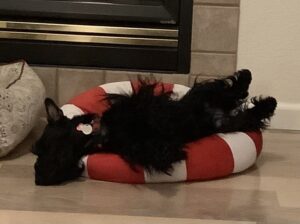 I have a reputation of being a snuggler. When I find that Wen is sitting on the couch watching TV or reading, I jump up right next to her and settle in. Curling up next to her is nice and warm and very comforting to this Scottie boy. That’s why The Snuggler can be found snuggling every single day!