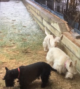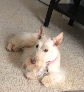 The closest we get to begging is whenever Wen heads over to the kitchen counter where the big jar of mini Milk-bone treats sits. We know that when she takes the lid off that it’s treat time and all three of us show up immediately to get our treats. She will also rattle the bag of chew treats that sits on a shelf in the pantry when it’s treat time, so when we hear that signal, we come running. Other than that though, begging is definitely not appreciated and if any of us Scotties would make a nuisance of ourself while someone was eating, we would get a reprimand or find ourself removed from the room!