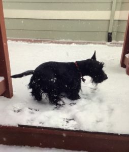 What started out as a cloudy day turned into another snow day. Yep, before we knew it, we Scotties were out in the backyard digging holes in the snow once again. Just when almost all of the snow from the last storm had melted, we got a whole new batch today and do we Scotties love it? Yes, we do!