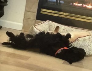 Nobody likes to hang out by the fireplace as much as Sadie does though. She stretches out on the dog bed in front of the fireplace until she’s panting and she’s not only toasty warm, but practically roasted! Finally, she hops out to go and cool off, which is fine, because then there’s more room for me and I like to have the whole bed to myself, which doesn’t happen very often!