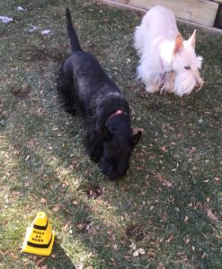 For example, if our treat jar (the big one with the Milk-Bones inside) is moved from its spot on the kitchen counter, we know it and we’re going to check to make sure that jar is still there, because it would be a tragedy if that treat jar disappeared. Something that important to us Scotties always bears investigation!