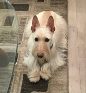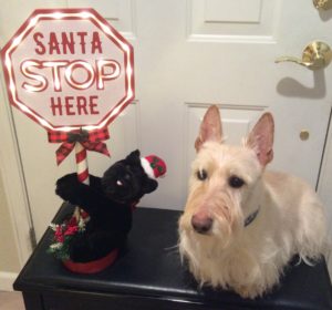 Well, we got our usual late October snowstorm and as a “bonus,” we got single digit temperatures! We Scotties explored our backyard, plowed paths, and found some crunchy ice to snack on, but we didn’t spend much time outside, because each time we went out, the toasty fireplace in our living room seemed like a more appealing option. When you weigh a cold snowy yard against a plush dog bed in front of the fireplace, the dog bed’s going to win out every time!