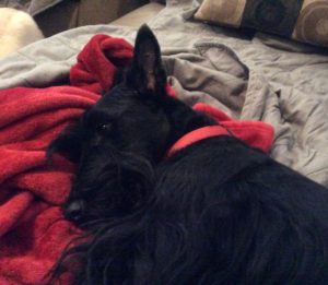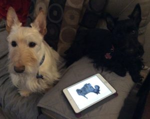Crafting time keeps us Scotties busy sniffing around, which makes Wen keep a constant eye on us, so that we don’t grab something off the floor and eat it. She already had to rescue a bow from Sadie and several pieces of plastic that inadvertantly fell off the kitchen counter workspace before we fast little hoovers could suck them up, since anything that falls on the floor seems to be fair game for us.