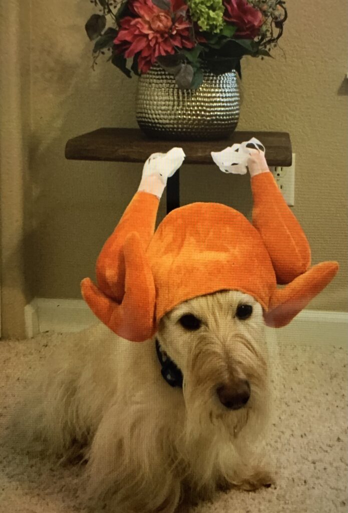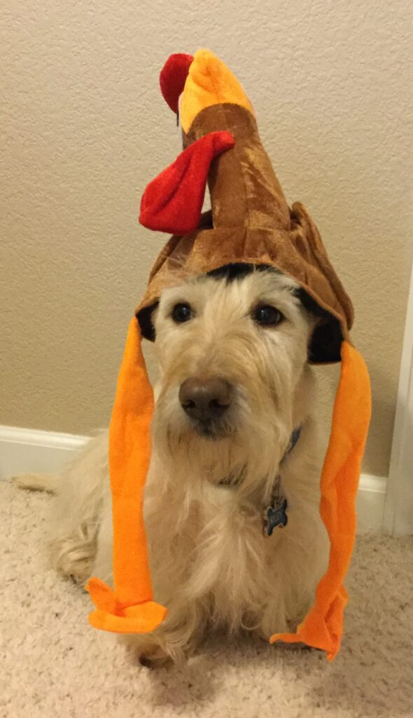 Over the years, Wen has bought several different turkey hats for us Scotties to wear for pictures on Thanksgiving. They have always been funny and silly-looking and unusual additions to our hat collection. Let’s face it—who doesn’t look ridiculous with a turkey on their head?!