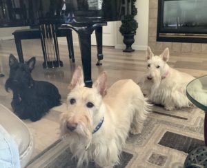 “Okay, you Scotties, it’s time to go get brushed out! Who’s ready to get their hair and teeth brushed?” (Nobody). We do this every morning and it’s part of our daily routine, but as you can see, there is a total lack of enthusiasm. “Okay, let’s go get brushed out! Who’s ready?” (Nobody).
